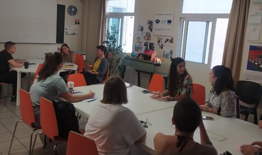 The training sessions have focused on the best approach to special education in multicultural educational environments, challenges faced by teachers and corresponding difficulties for students from refugee or migrant backgrounds, as well as those with learning or other difficulties. Through themed discussions, teachers had the chance to learn more fully about the processes whereby learning and other difficulties are identified and managed, applying special education methods, and providing education for migrant and refugee students. Drawing on her observations and involvement in a particular classroom, Katerina was able to suggest specific classroom management and support techniques for children. She joyfully shared her experience: