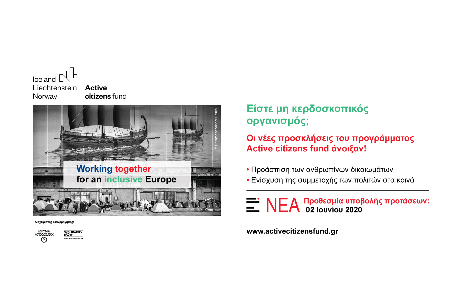 Θέλοντας να συμβάλουμε στην τήρηση των μέτρων για τη δημόσια υγεία και στη διευκόλυνση των οργανώσεων που επιθυμούν να καταθέσουν πρόταση για τις προσκλήσεις “Προάσπιση των ανθρωπίνων δικαιωμάτων” και “Ενίσχυση της συμμετοχής των πολιτών στα κοινά” , σας ενημερώνουμε ότι δίνεται παράταση έως τις 2 Ιουνίου 2020.